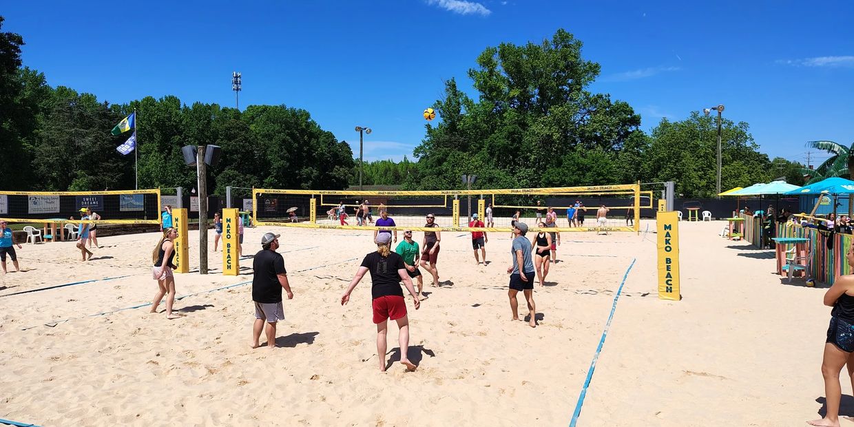 No ocean? No problem. Mako Beach brings the coastal vibe straight to the Lake Norman area with white sand courts, sunshine, and the kind of laid-back energy that feels like vacation any day of the week. Whether you’re here to play pickup volleyball, join a league, or just sip something cold on our sprawling courtside patio, there’s always room for friends, family, and co-workers to relax and have fun.